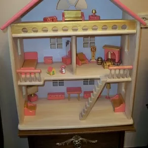 Экологичная и безопасная игрушка для вашего ребенка- деревянный домик для кукол . Подходит для деток от 3-х лет. Размеры: В-47 Г-25 Ш-54 см. Расчитан на кукол 12 см. в комплекте набор деревянной мебели = 18 предметов. Пересылаю по Украине Новой Почтой..